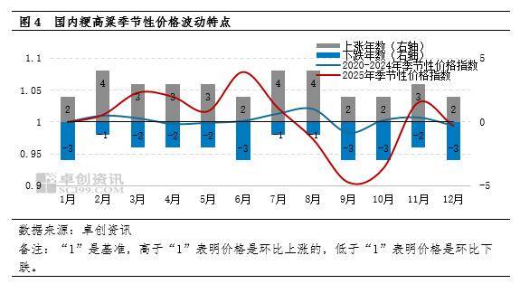 从季节性波动特点来看,近五年1月份粳高粱市场的均价通常保持相对平稳,2月到3月份窄幅偏强,但上涨幅度有限。