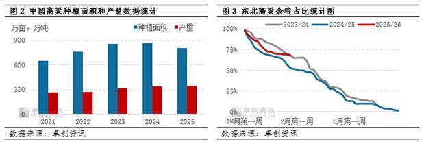 据卓创资讯统计数据显示,2025年全国高粱种植面积为804万亩同比下降6.73%。从作物种植结构来看,粳高粱种植面积变化不大,而糯高粱种植面积出现一定缩减,其中春播糯高粱种植面积降幅最为显著。受益于良好的天气条件和不断完善化的灌溉体系,全国高粱平均单产达到858斤/亩,同比增幅9.34%。2025/26年度全国高粱产量上升。据卓创资讯调研统计,2025/26年度全国高粱产量345万吨,较2024/25年度增加7万吨,同比增幅2.07%。其中粳高粱产量207万吨,较2024/25年度增加20万吨,同比增幅10.70%;糯高粱产量138万吨,较2024/25年度产量减少13万吨,同比减幅8.61%。